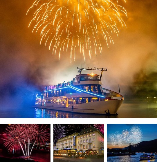 Busfahrt mit einem komfortablen Reisebus mit Zustiegsmöglichkeiten in Wilhelmshaven Preußen/Posener Str. und Himmelreich Klinkerstr. Westfalen Tankstelle. Unser Weg führt uns nach Rüdesheim ins Parkhotel, welches unmittelbar am Rheinufer liegt. Hier genießen Sie die Atmosphäre des 4 Sterne Hotels welches sich 100 Meter von der berühmten Drosselgasse entfernt befindet. Hauptakttraktion der Reise ist und bleibt das spektakuläre Feuerwerk. Am späten Nachmittag/frühen Abend legt unser Schiff von Rüdesheim ab. Wir fahren an zahlreichen Burgen vorbei in das sagenumwobene Obere Mittelrheintal in Richtung Loreleyfelsen. Am Zielpunkt angekommen dreht unser Schiff um und wir fahren im Schiffskonvoi vorbei an prächtigen Feuerwerken mit imposanten Donnerhall. Rhein in Flammen endet mit einem großen Finalfeuerwerk bei Rüdesheim. Mit Sicherheit ein besonderes Erlebnis!! 3 Tage Rüdesheim mit abwechslungsreichem Tagesprogramm. "RHEIN IN FLAMMEN" Unsere Leistungen: Busfahrt mit Reisebegleitung, 2 Übernachtungen mit Frühstück im Doppel-/Einzelzimmer, 1x Abendessen im Hotel am Anreisetag als 3-Gang Menü, Ticket für Rhein in Flammen auf der MS Godesia (oder ähnliche Kategorie) inklusive 2-Gang Menü, Stadtführung Rüdesheim, Eintritt und Führung Siegfrieds Mechanisches Museum. Es stehen nur Doppelzimmer zur Verfügung!! 597,00 € p.P. im DZ